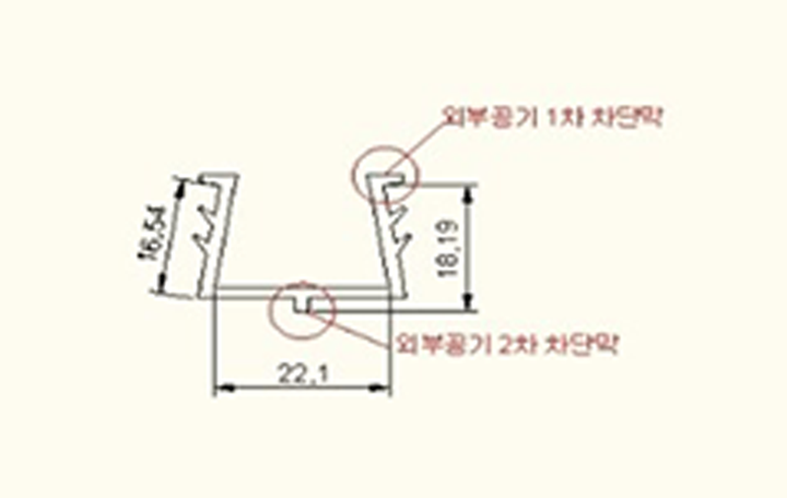 - 디자인의 차별화 : 라운드 디자인, 환기창의 유리고정 및 공기차단 가스켓(디자인)